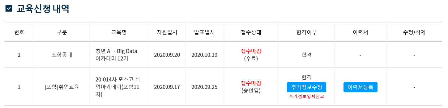 | 포스코 AI·빅데이터 아카데미 0일차 - 지원 및 1차 서류 합격 (0) | 2020.11.02 |
