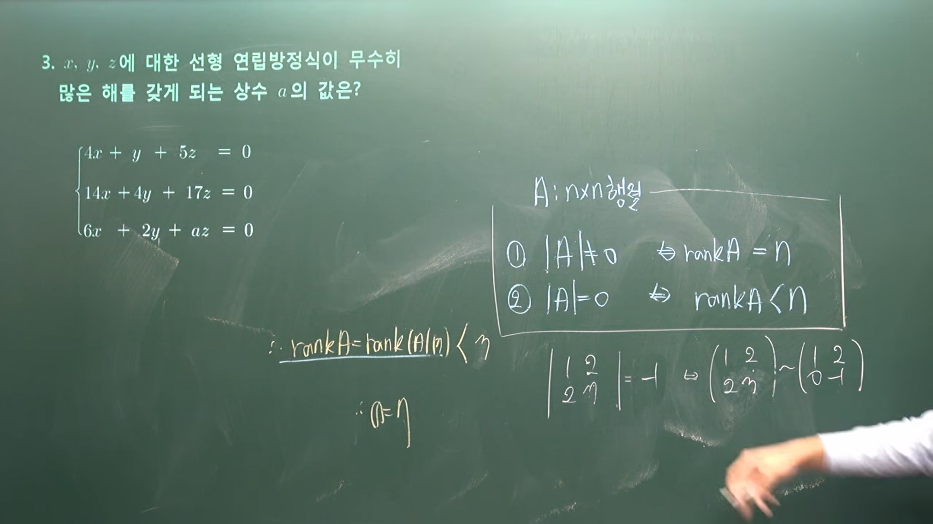 | 선형 연립 방정식이면 rank(A)와 rank(A|B)는 같을 수 밖에 없다 |