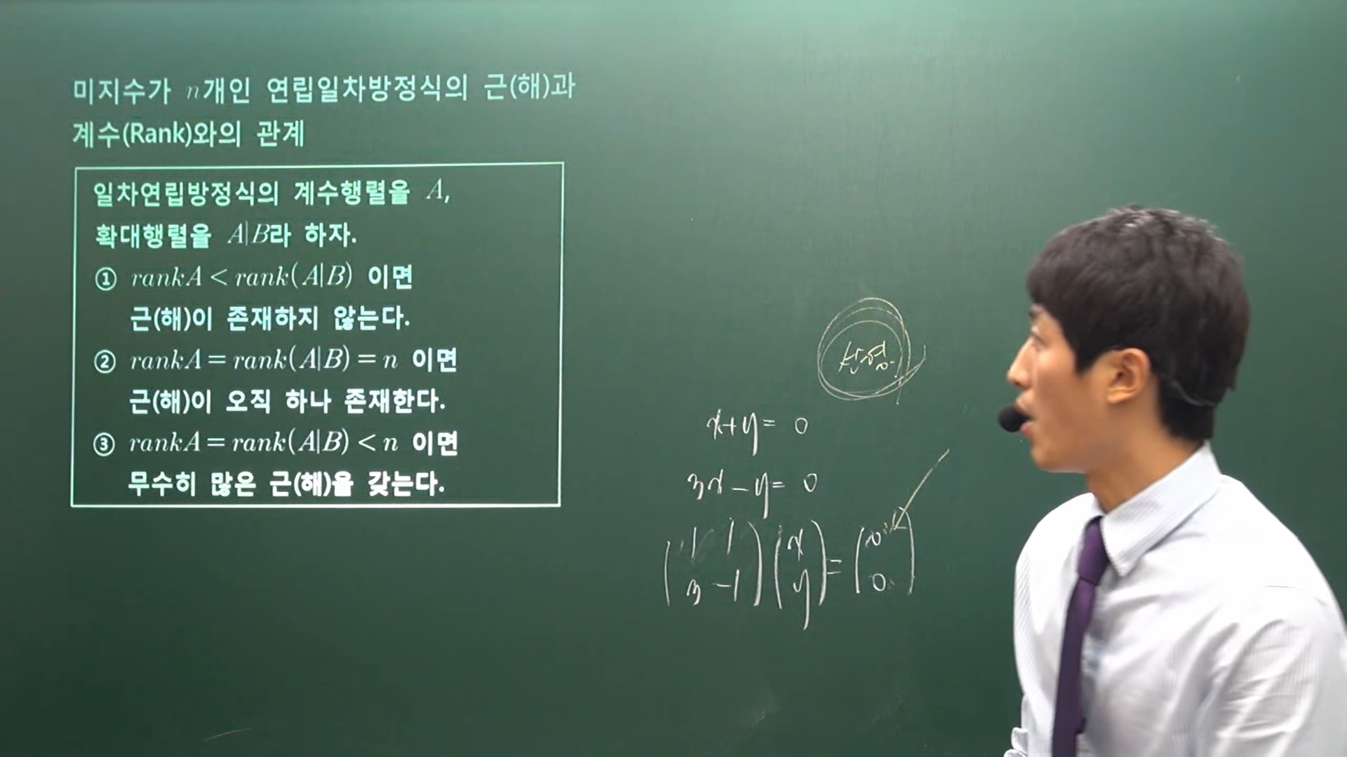 | 해가 존재할 조건 : 해가 1개일 때 + 해가 무수히 많을 때 | |