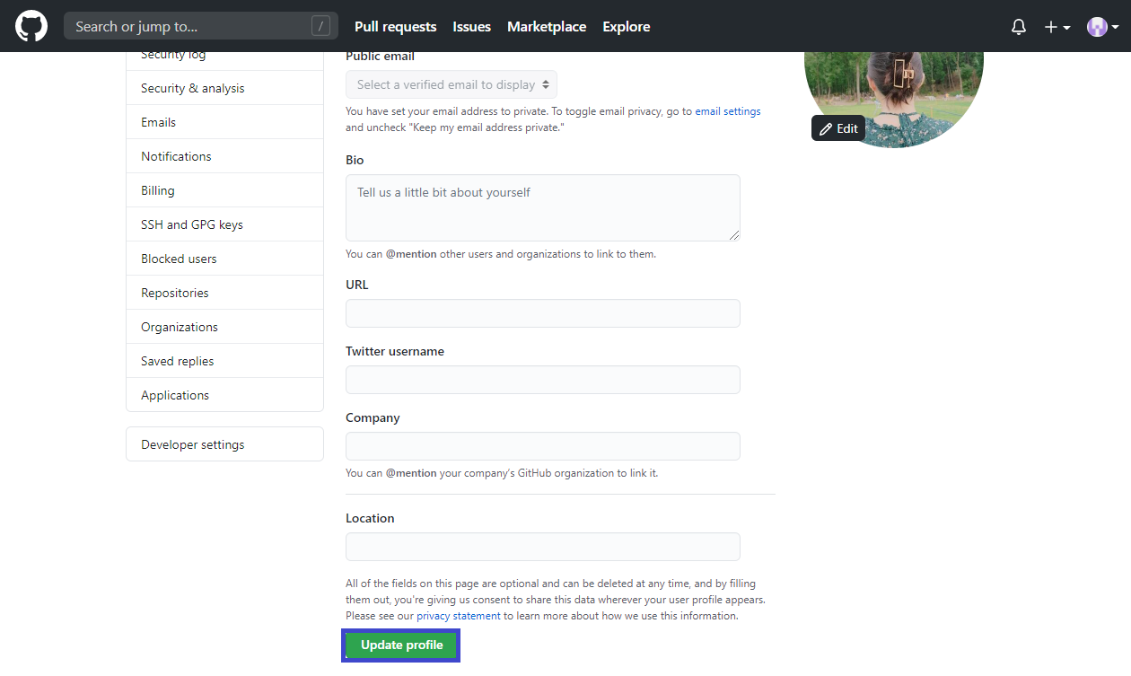 | 9) SSH and GPG keys: SSH 키나 GPG 키를 입력할 수 있다. | |