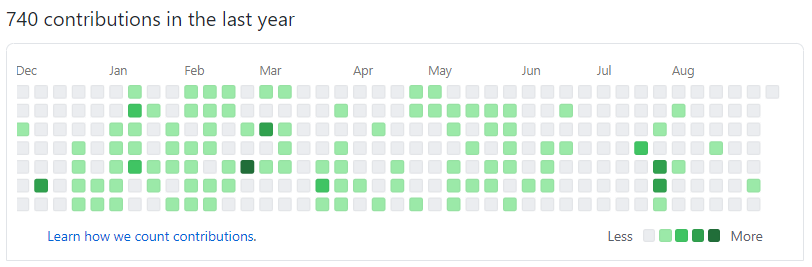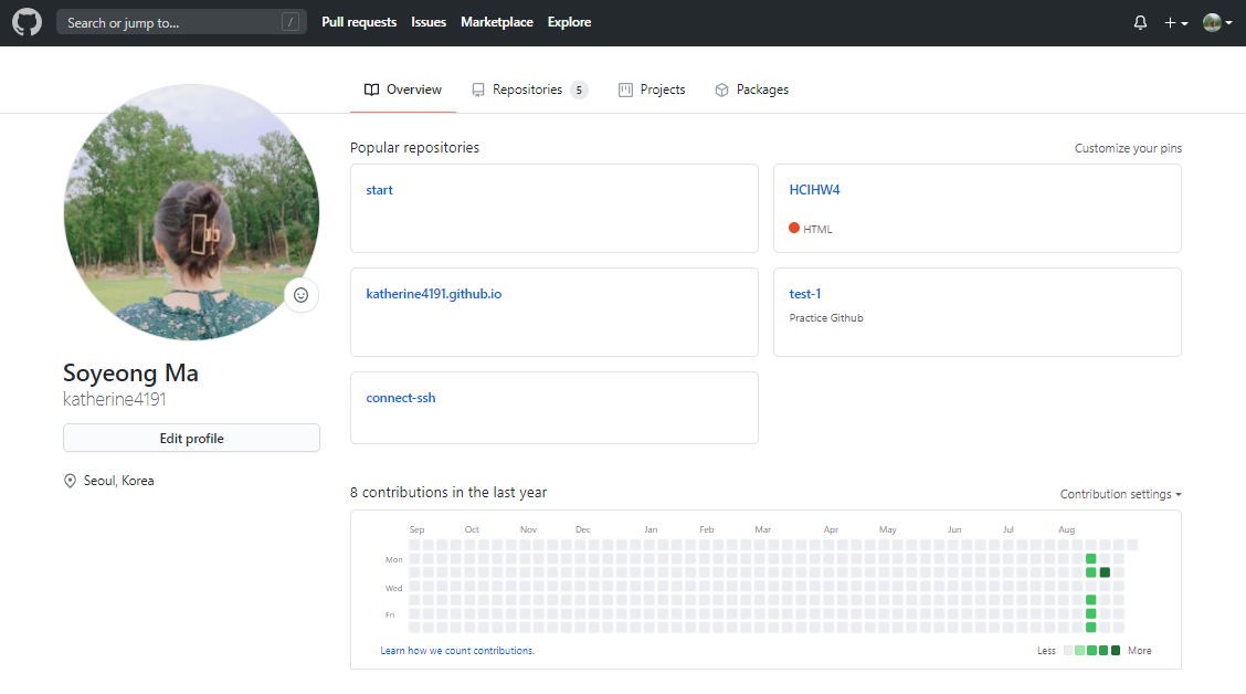- 초록색이 진할수록 그날 contribution이 많았다는 뜻이며