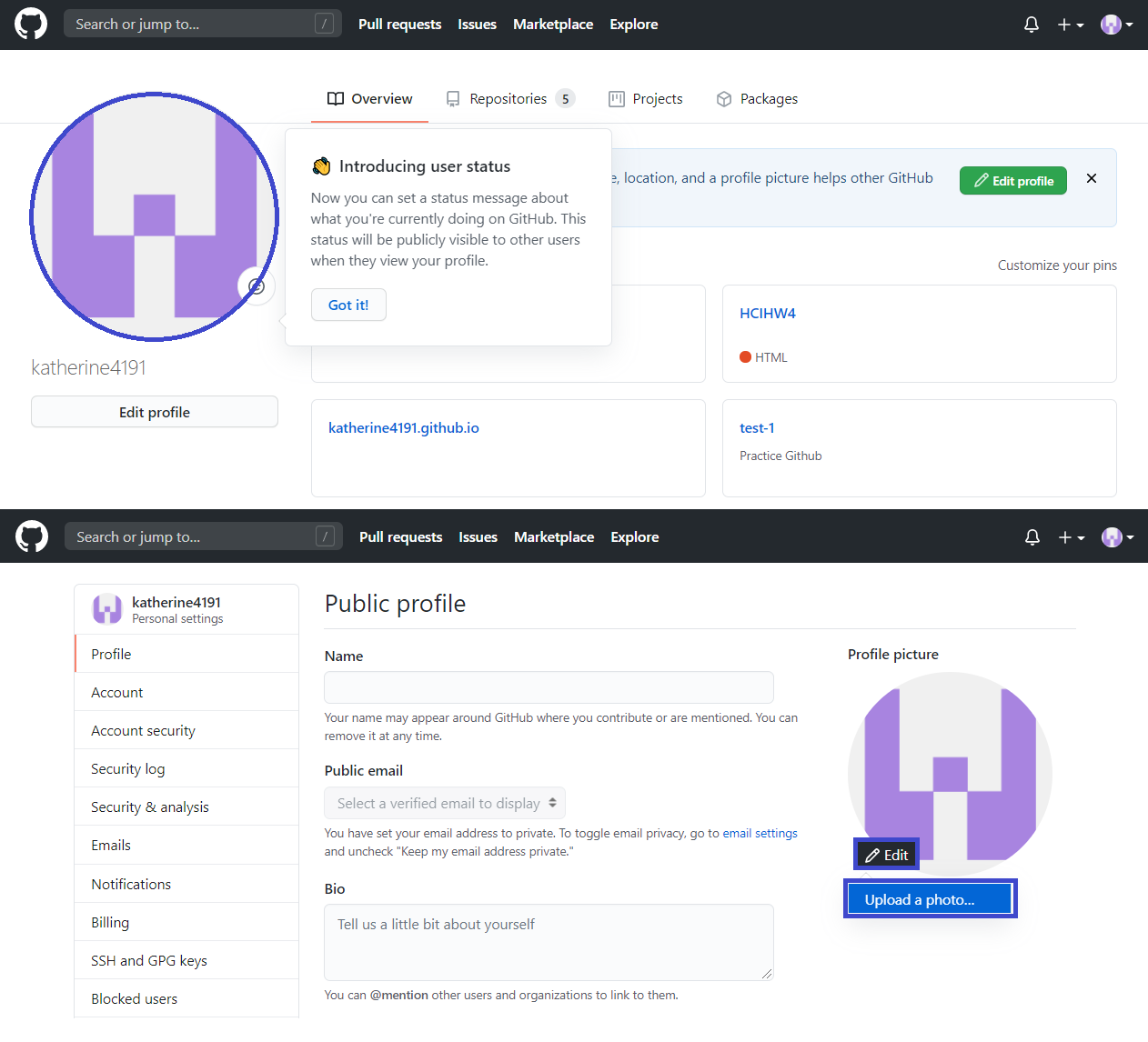 - 'https://github.com/깃허브아이디'로 접속하면 해당 아이디 사용자의 프로필 사진을 비롯해서,