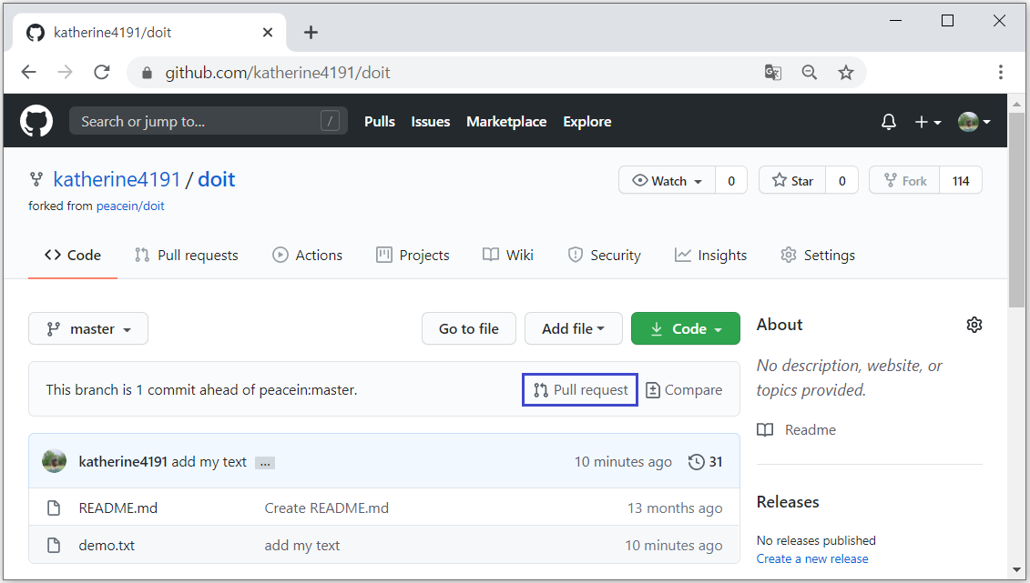하지만! 원래 소스가 있던 peacein/doit 저장소에 반영되자 않았다.