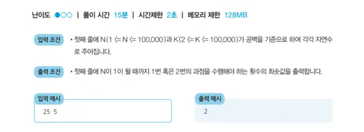 특정한 문제를 만났을 때, 그리디로 문제를 풀 수 있을지 파악할 수 있어야 한다.