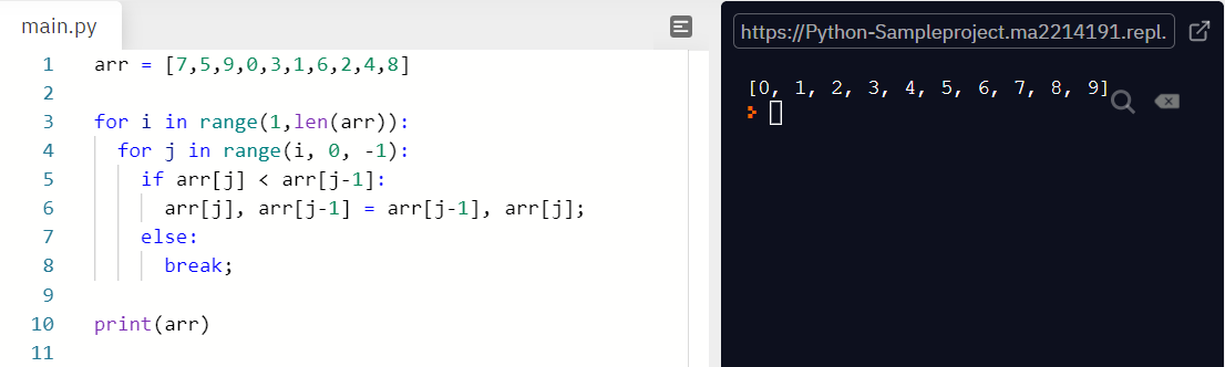 arr[j], arr[j-1] = arr[j-1], arr[j];