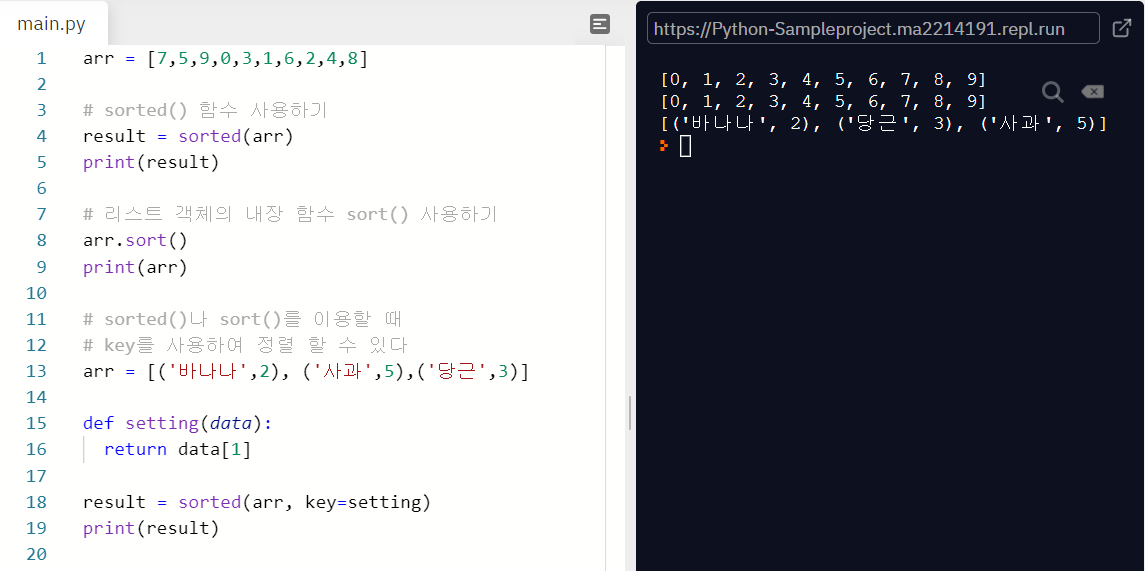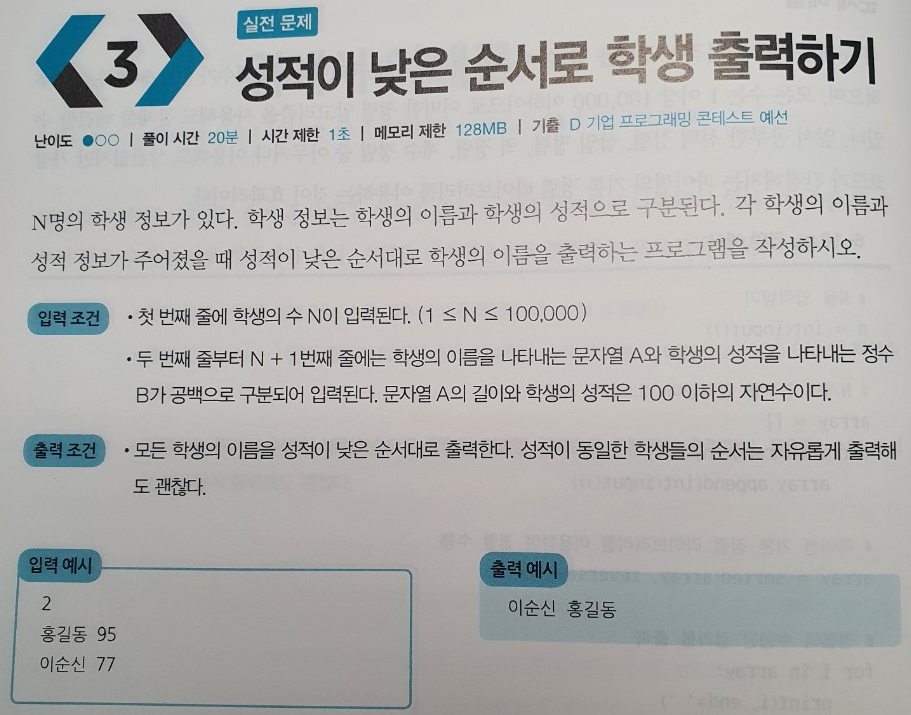 학생 정보(점수, 이름)으로 묶은 뒤에 점수를 기준으로 수행해야 한다. 따라서 이런 경우에도 -> 파이썬 기본 정렬 library