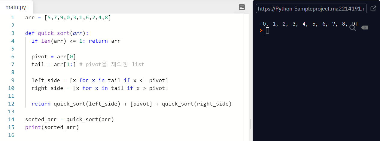 파이썬의 장점을 살린 퀵 정렬