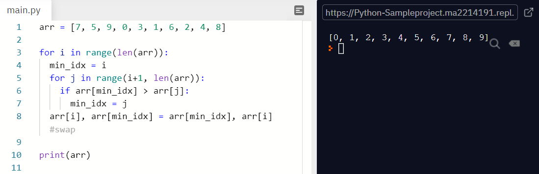 arr[i], arr[min_idx] = arr[min_idx], arr[i] #swap