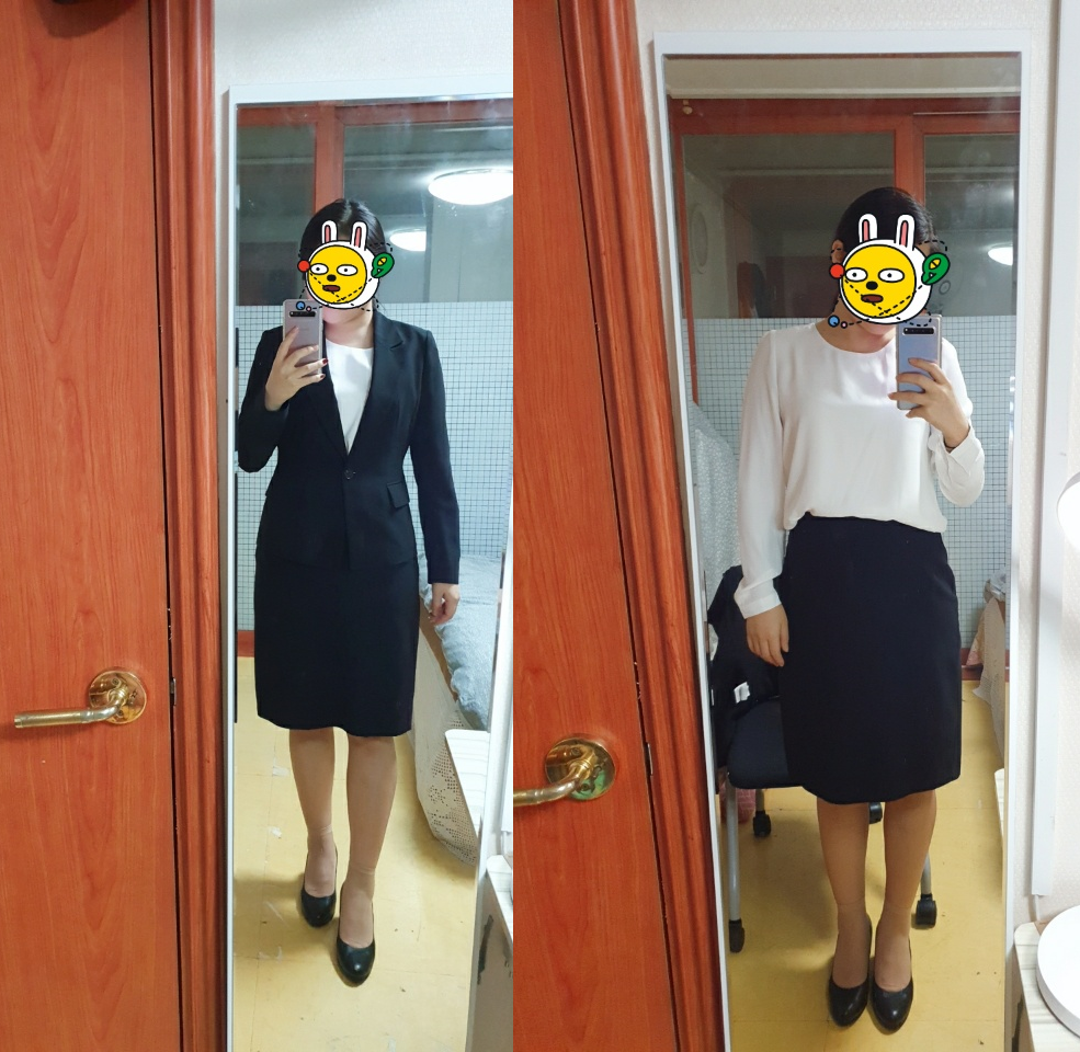 2. 왼쪽은 자켓 입고 찍은 것, 오른쪽은 블라우스만 입고 찍은 것(나중에 거울을 닦아서.. sorry..)