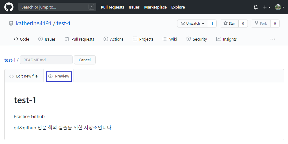 저장소를 fork 했다면 그 저장소에 있는 소스나 README 파일일 수정할 수 있다.