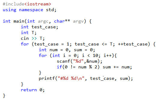 for (test_case = 1; test_case <= T; ++test_case) {