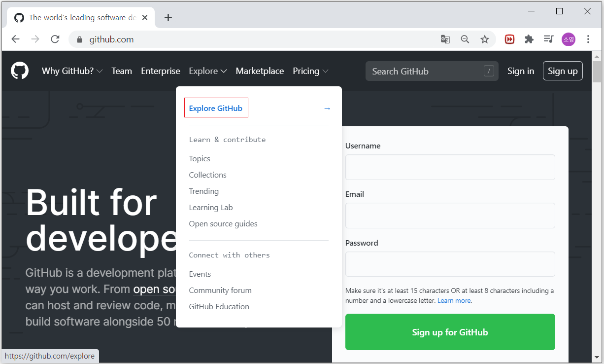 - 여러 서비스 중 깃허브가 유명한 이유는 여러 개발자들의 오픈 소스가 올라와 있기 때문이다.