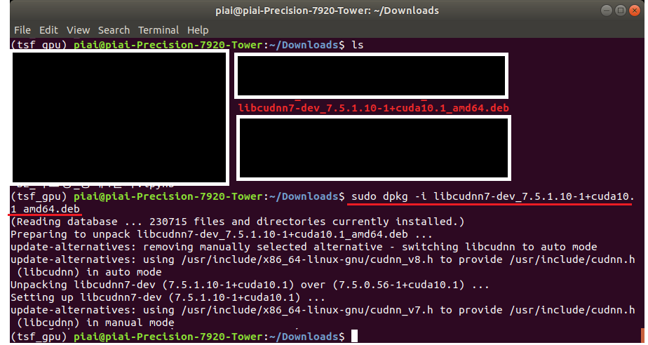 - dev 파일을 다운받은 다운로드 폴더에 들어가서 아래 명령어 실행