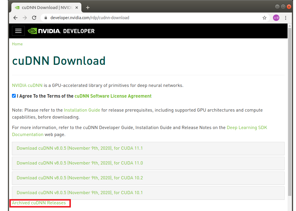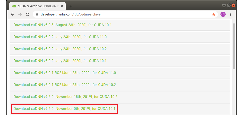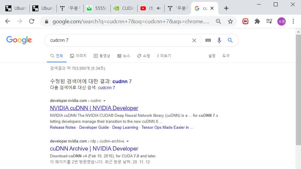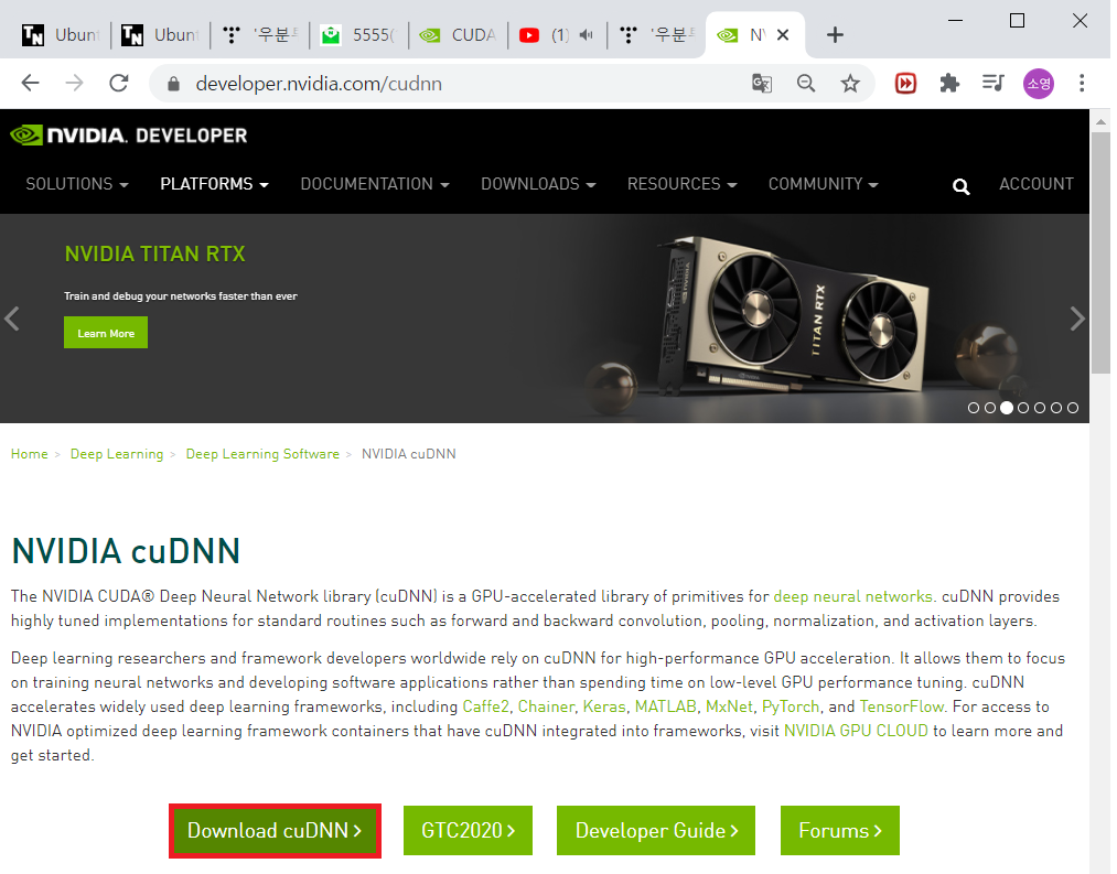 cuda 버전에 맞는 DNN 설치 (7.XX 추천)